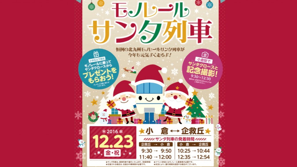 北九州モノレールは12月23日(金・祝)にサンタ列車を運行する。