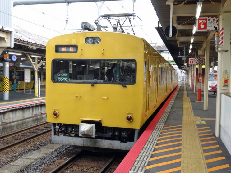 後方は、中間車両モハ114を改造、運転台を設置したクモハ114-1118。懐かしい103系に風貌が似ています。