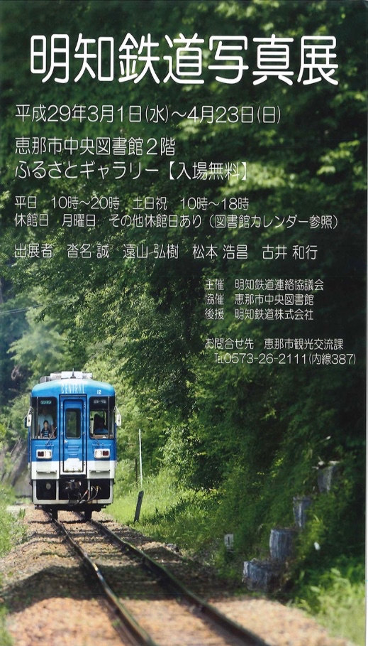 明知鉄道の四季折々の姿を捉えた写真展が恵那市中央図書館で開催される。