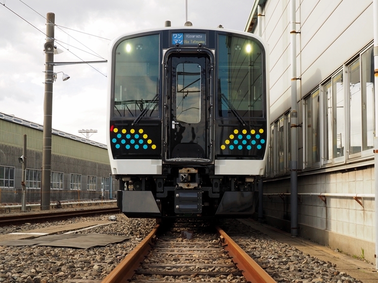 車両外観の帯色は房総の海を思わせる青に、菜の花の色である黄色を組み合わせ、前面は房総の波しぶきを思わせる水玉模様のデザインでまとめています。また、既存の209系とは異なり拡幅車体を採用したため、車体幅が2950mmと少し幅広くなりました。