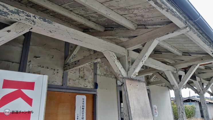 駅舎出入口。駅名板が辛うじて読めます。