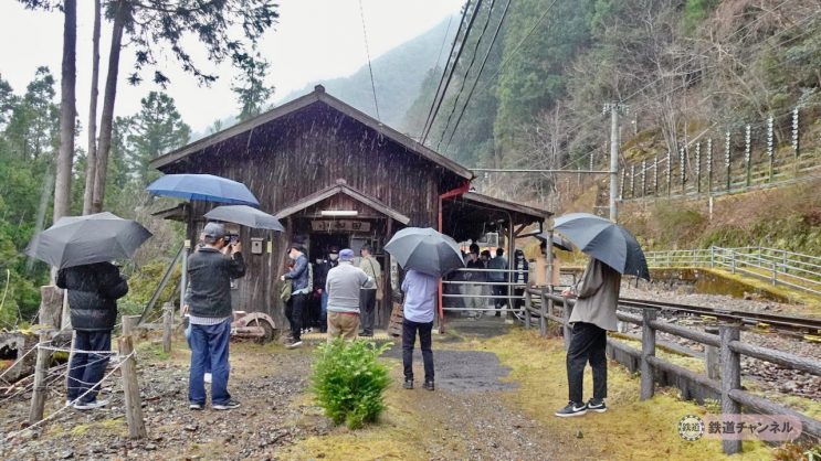 トップ画像は、JR東海飯田線小和田(こわだ)駅駅舎。秘境駅のトップランク、人気のある駅舎なので皆さん熱心に写真を撮っています。雨脚が写る程激しくなってきました。