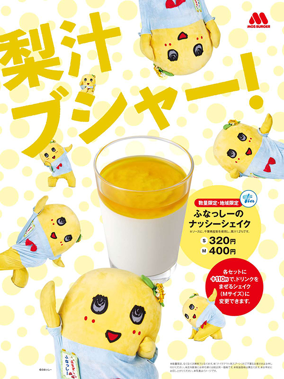 モスバーガー「ふなっしーのナッシーシェイク」地域限定発売中!