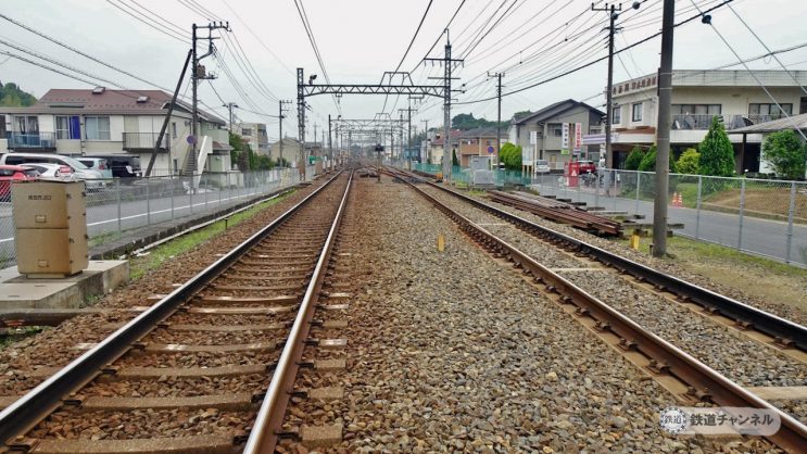 こちらが成田街道の踏切側。400mくらいあるので見えませんね。