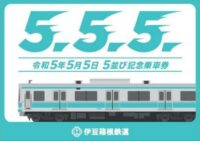 伊豆箱根鉄道は、令和5年5月5日の5並びを記念し「5並び記念乗車券」を発売します。記念乗車券の台紙には、大雄山線5505編成をデザインし、中面は当社2路線の5に関連する画像をあしらっています。