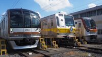 引退済みの営団7000系と有楽町線・副都心線車両の10000系・17000系を並べた記念撮影会が、2023年9月3日、江東区の新木場車両基地で開催されました。