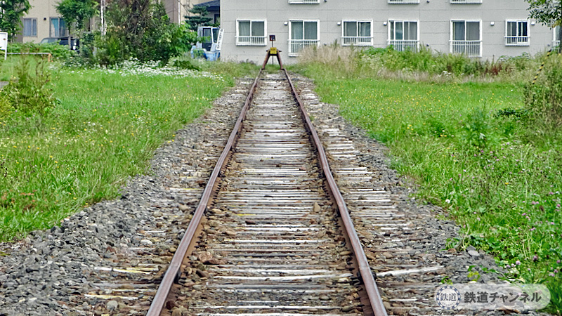 駅廃止後の「駅跡さくら公園」にも終端部の車止めはありますが、元の位置から150メートルくらいホーム側に移動されています。