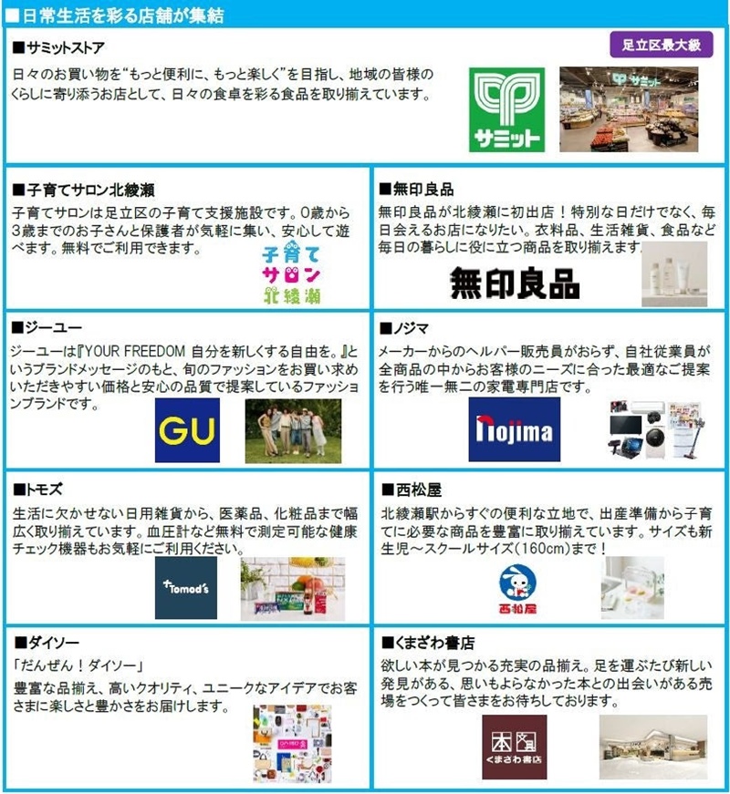 このほかサミットストアや無印良品など、日常生活に欠かせない店舗も多数出店予定。