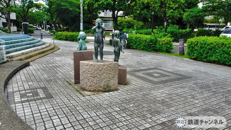 「青和ばら公園」横の歩道に彫刻が飾られています。