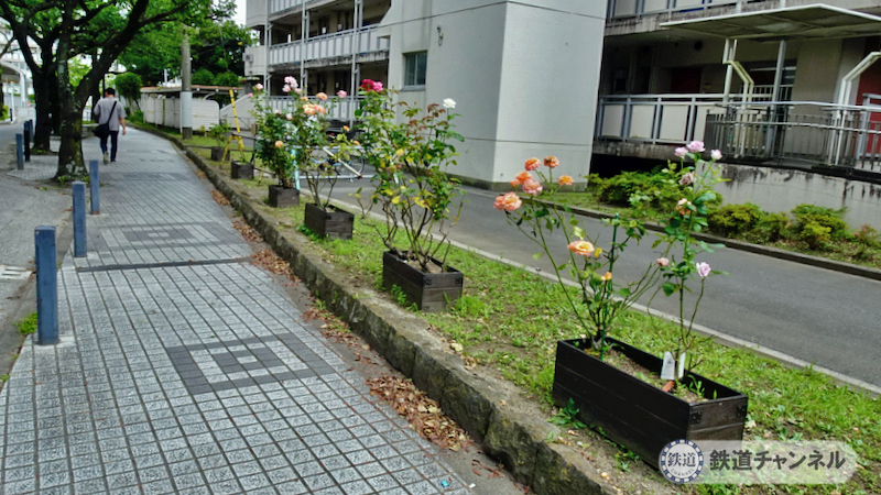 青井駅の方に戻る道にもバラが列べられ花を咲かせていました。「ばらのまち」を標榜する青井らしい佇まいです。