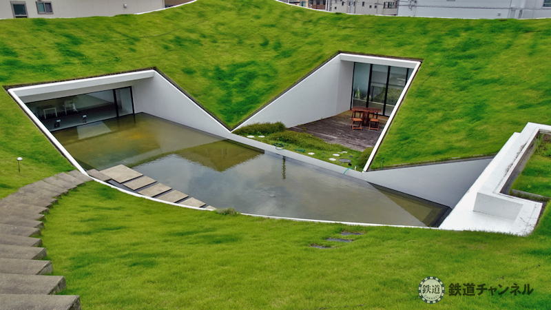 美術館の概要に建物のコンセプトがあります。特に「屋上、内部壁面に盛土しその上を緑化 ヒートアイランドを防ぐ」とあって、視覚的な魅力と共に、確かなコンセプトでデザインされていることが分かります。