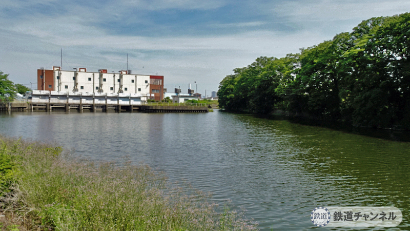 水門の辺りから見た垳川。下流で、中川に流れ込む部分です。埼玉県垳川排水機場があります。