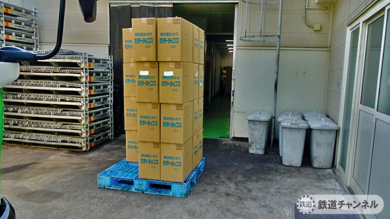 菊水堂を辞して八潮駅に戻ります。それでも駅まで20分以上かかります。集荷のトラックに積み込まれていたのは「野沢菜わさび」味でした。