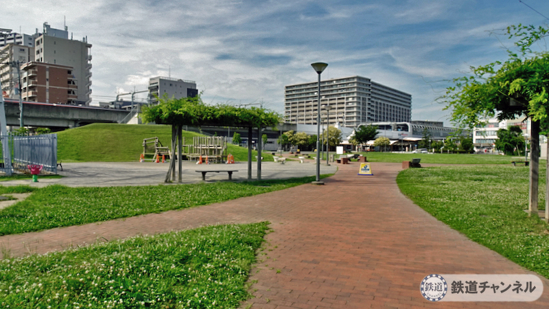 駅の手前です。「やしお駅前公園」を通って駅に行くと対角線で少し近くなります。