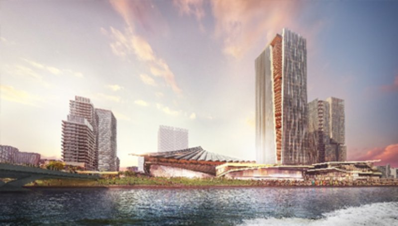 この開発の総延床面積は約126万平方メートル、総事業費は約9,000億円規模とされ、スタジアム棟やホテル・レジデンス棟、ライフサイエンス・商業複合棟、舟運・シアターホール複合棟など9棟前後で構成される見通しです。