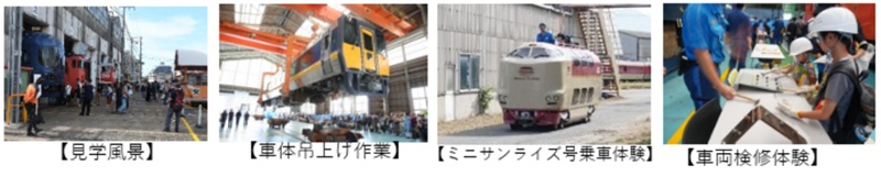 また、小学生以下の子どもを対象としたイベントも充実。「ミニサンライズ号」や「ミニドクターイエロー」への乗車体験 、ちびっこ車掌体験、グッズ作成体験、制服を着て記念撮影ができる子供制服撮影会、車両検修体験ができるキッズメンテナンスセンターなどが楽しめます。一部の体験イベントは参加人数に限りがあるため、当日会場で整理券が配布されます。このほか、軌道自転車の体験乗車や、各社のPRブース、鉄道グッズや軽食の販売も行われます。