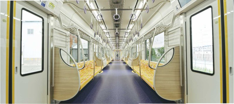 バリアフリー対応としては、各車両に車いすスペースを設け、ドアの開閉をチャイム音で知らせる装置を備えました。空調面では、各車両にパナソニックの「ナノイーX」方式空気清浄機を2台搭載します。