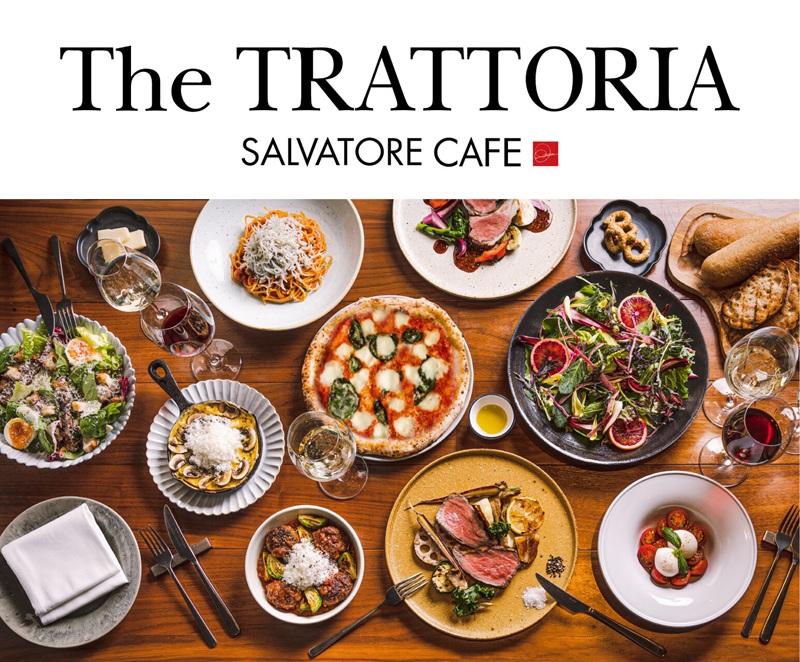 「スタジアムサイドテラス」には、グランシェフ サルヴァトーレ・クオモが監修する「The TRATTORIA SALVATORE CAFE」が出店。本格イタリアンをよりカジュアルに楽しめるオールデイダイニングで、モーニングからディナー、カフェタイムも気軽に立ち寄れる空間です。