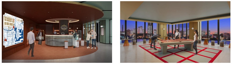 「OMO5横浜馬車道 by 星野リゾート」は、横浜高速鉄道みなとみらい線「馬車道駅」に直結しています。超高層複合ビルの46階~51階に、客室数175室が入り、施設内にはOMOベースのほか、宿泊者専用ラウンジやフィットネス、セルフロッカーが備えられています。宿泊料金は1泊43,000円~(1室あたり、税込、食事なし)。