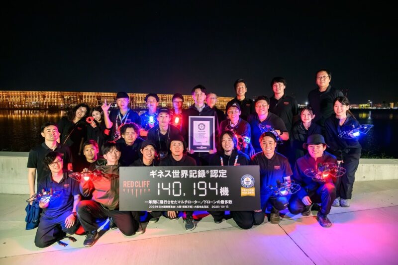 レッドクリフは、万博の準備期間を含む2025年3月17日~閉幕日の10月13日までの期間に、累計で140,194機ものドローンを飛行させました。この実績が評価され、「Most multirotors/drones launched in a year (一年間に飛行させたマルチローター/ドローンの最多数)」としてギネス世界記録™に正式認定されました。この記録は、既存の記録を更新したものではなく、新たに設立されたカテゴリーでの初めての認定となります。