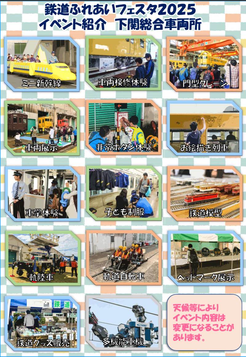 入場無料! JR西日本「鉄道ふれあいフェスタ 2025」下関総合車両所で10/18に開催!車両の吊り上げは必見、子どもも大人も楽しめる(山口県)