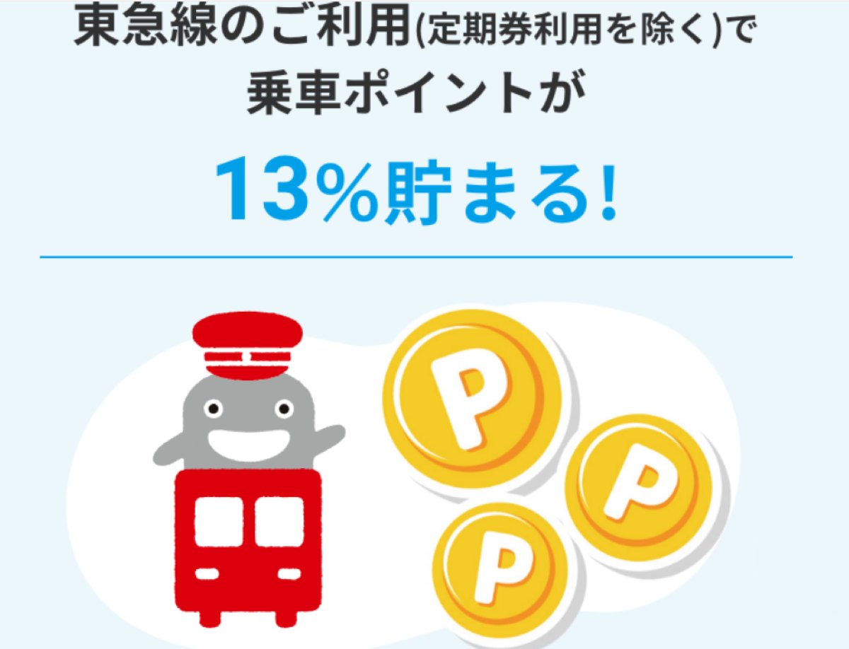 このカードの最大の特徴は、その驚異的なポイント還元率です。事前に「電車とバスで貯まるTOKYU POINT」に登録しておけば、定期券利用を除く東急線の乗車で、なんと13%ものTOKYU POINTが貯まります。通勤や通学、お出かけで日常的に東急線を利用する人にとっては、乗るたびにポイントが面白いように貯まっていく、まさに「ポイント錬金術」のようなカードです。