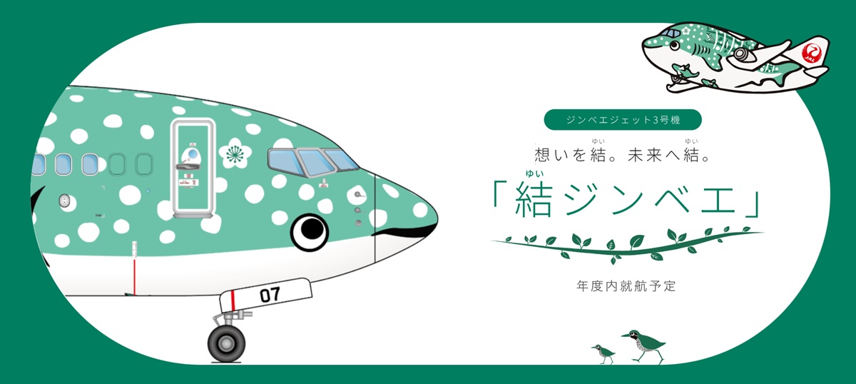 ジンベエジェット3号機「結ジンベエ」 就航へ!青・ピンクに続くは”緑”、世界自然遺産登録5周年を記念し 沖縄 美ら海水族館と共創!(JTA)