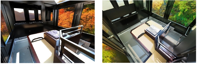 ・天井や側面をガラス張りとし、開放感のある車内を実現
