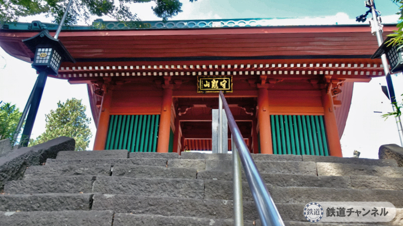 上る前に望遠レンズで扁額を撮影。お寺は「守竜山証明院東福寺」です。