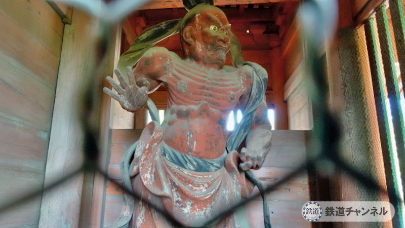 門の中にはお寺を守る金剛力士像、右側の阿形。