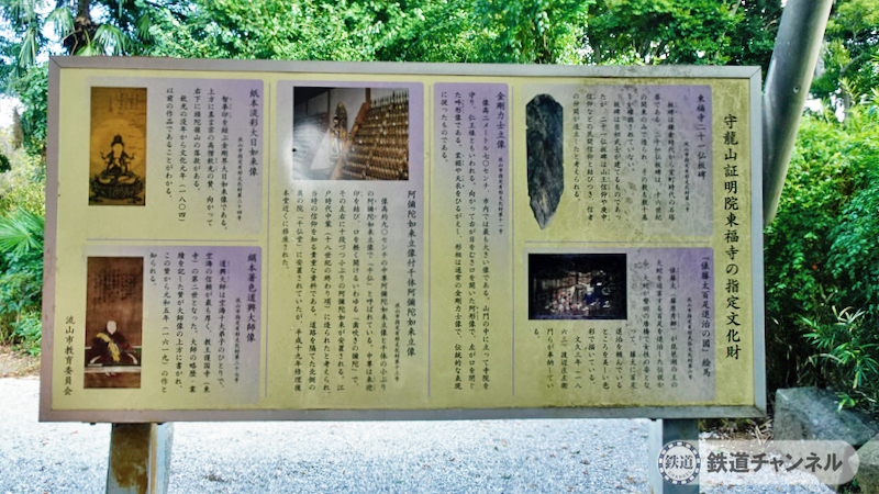 門の東側に「守竜山証明院東福寺の指定文化財」のパネルがあります。既に見た門の金剛力士像は流山市指定有形文化財第11号。像高は、2メートル70センチ、市内では最大。仁王像とも言われます。
