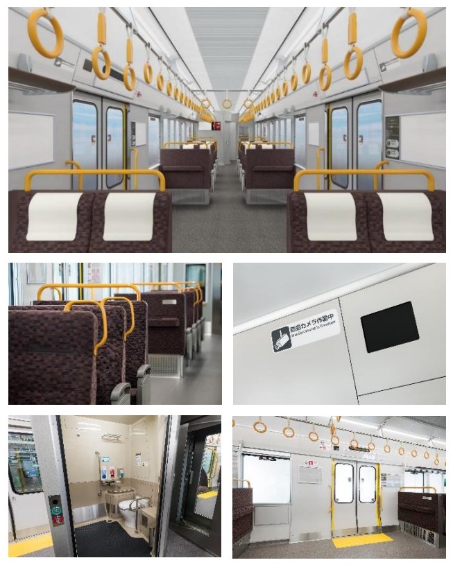 また、とっさの際に掴まりやすいよう、吊手や手スリはオレンジ色調のものが採用されるほか、防犯カメラも設置されます。