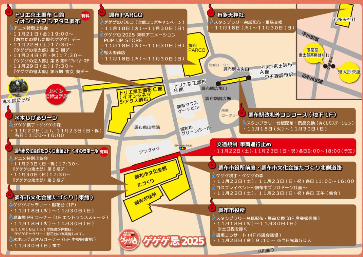 京王線の企画だけでなく、調布市全体で開催される「ゲゲゲ忌2025」本体もイベントが盛りだくさんです。期間は11月18日(火)~30日(日)まで、市内各所が会場となります。
