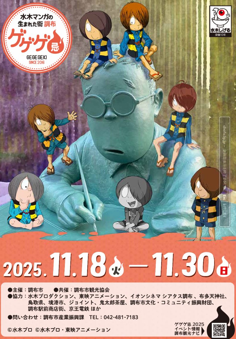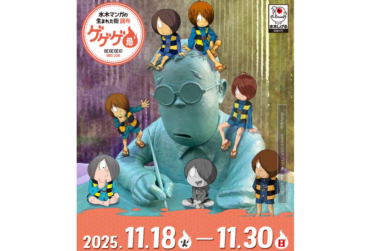 東京都調布市では、名誉市民である漫画家の「水木しげるさん」の功績をたたえ、命日である11月30日を「ゲゲゲ忌」とし、水木しげるさんゆかりの地を巡るイベントなどを毎年開催しています。2025年も11月18日(火)~30日(日)にかけて、様々なイベントなどが、調布市内で開催されます。