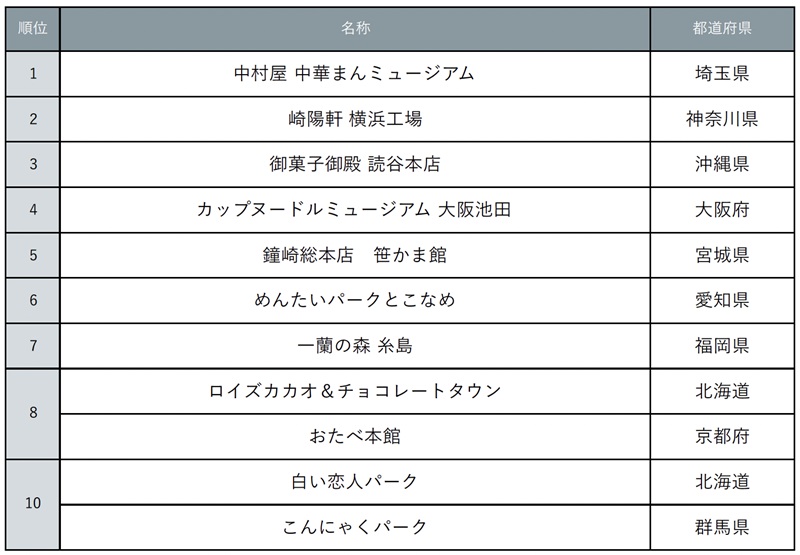 『じゃらんニュース』が発表したランキングのトップ10(10位は同率2件)は以下の通りです。