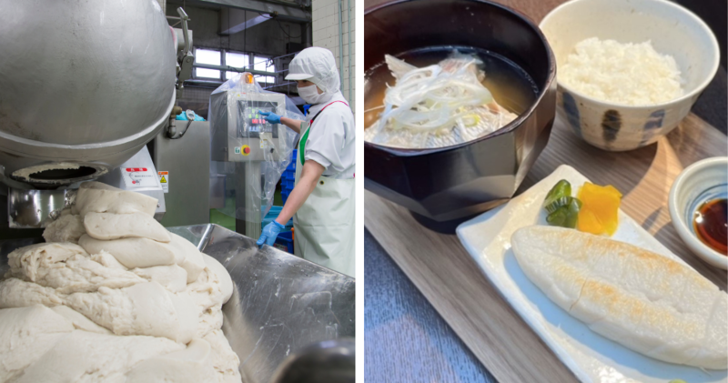 早朝8時から工場見学ができ、笹かまぼこ「大漁旗」のおいしさを発見できる、毎週土曜・日曜限定開催のツアーです。かまぼこ職人が案内する工場見学では、かまぼこの歴史と製造工程を学び、窓越しに職人の作業を見ることができます。見学後は、焼き立ての大漁旗とあら汁付きの特製朝食も楽しめます(毎週土曜・日曜限定開催、有料・要予約)。