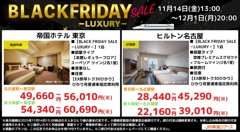 新幹線+ホテルが衝撃価格に…ジェイアール東海ツアーズが「ブラックフライデーセール」開始!