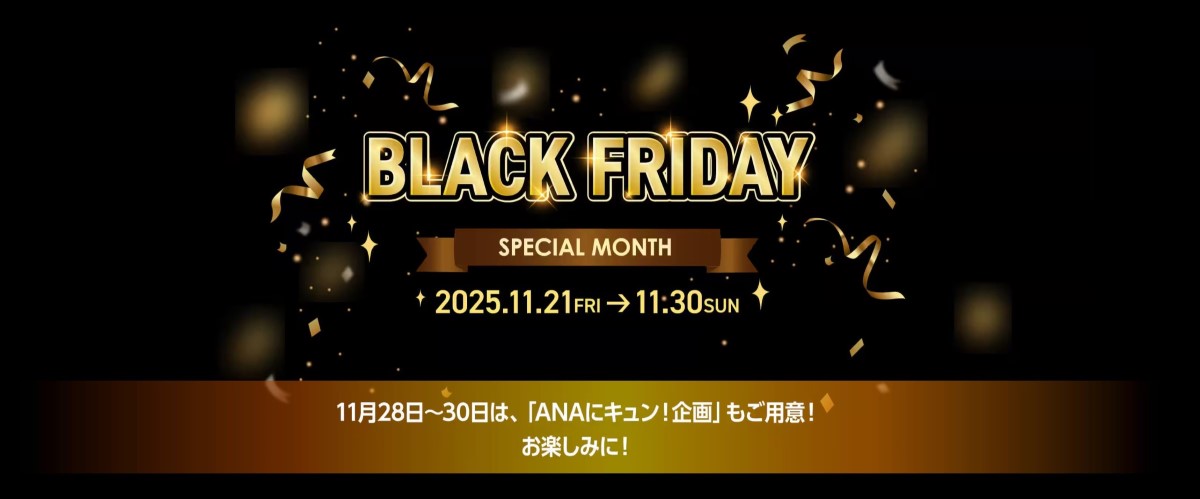 ANAは、2025年11月21日(金)から11月30日(日)までの10日間、「ANAブラックフライデー」を開催します。