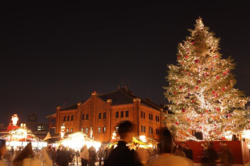 2024年は約124万人が来場したという人気イベント。ドイツから取り寄せた装飾と赤レンガ倉庫の雰囲気が相まって本格的な世界観を表現しており、2010年の初開催以来、日本有数のクリスマスマーケットとして知られています。過去最大となる約12メートルの本物のモミの木を使用した巨大クリスマスツリーは約2万球超のLEDで彩られ、週替わりのイルミネーションなども楽しめます。入場は有料となりますが、無料で気軽に歩けるエリアもあるので、事前に確認しておきましょう。