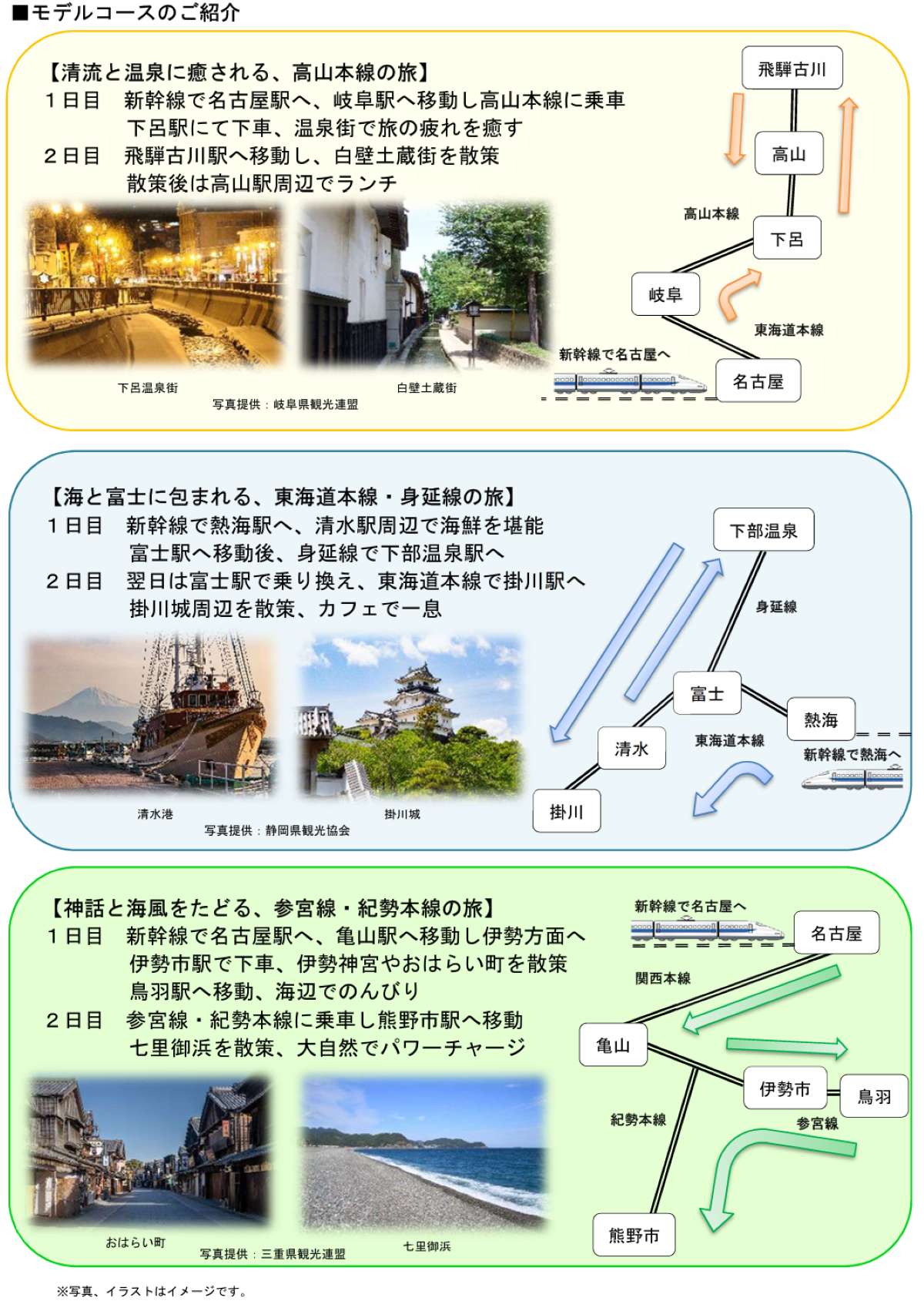 では、どどのように使うのが良いのかというと、JR東海では以下のようなモデルコースを紹介しています。