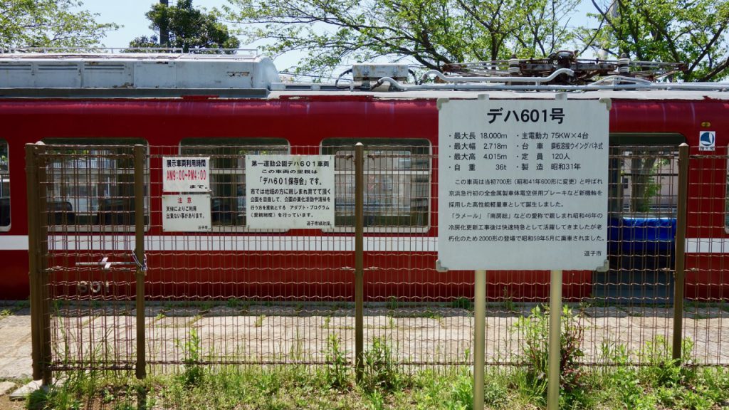 その前に逗子市の看板がありました。デハ601号ということはおそらくこの形式のトップナンバーです。1956年(昭和31年)に700形として誕生した車両が1966年(昭和41年)600形に改称されたと書いてあります。1984年(昭和59年)に廃車となったとのことです。この車両の里親は「デハ601保存会」。