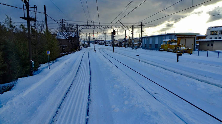 羽後本荘駅の由利高原鉄道ホームで待っていたのは由利高原鉄道YR-3000形気動車3両の中で2014年(平成26年)に導入された最新の車両、3003号車でした。と言っても雪でよく見えません。※トップ画像参照