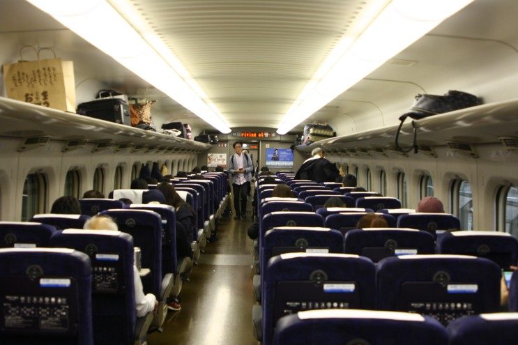 シートの色や照明が、いつもと違う。N700系じゃなくて、カモノハシの700系だった。