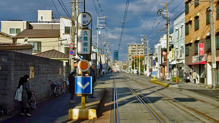 0.4kmで姫松停留場。駅名は古今集の和歌から、かつてはこの辺りに海岸の松林があったというのですから想像ができません。