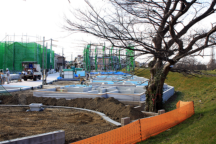 ―――東武伊勢崎線 北越谷駅から徒歩12分、元荒川のほとりに建ち始めた予定価格4000万円前後の宅地現場を歩き、戸建て分譲住宅のトレンドを体感した。
