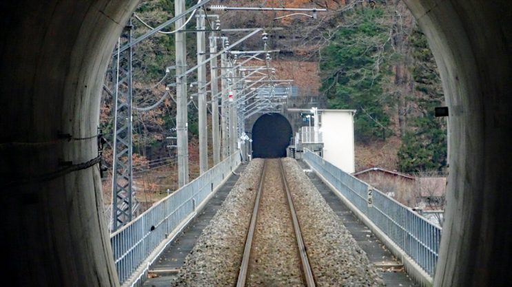 トンネルを抜けると第一鬼怒川橋梁を渡って川治湯元駅。川治温泉駅から1.2km。