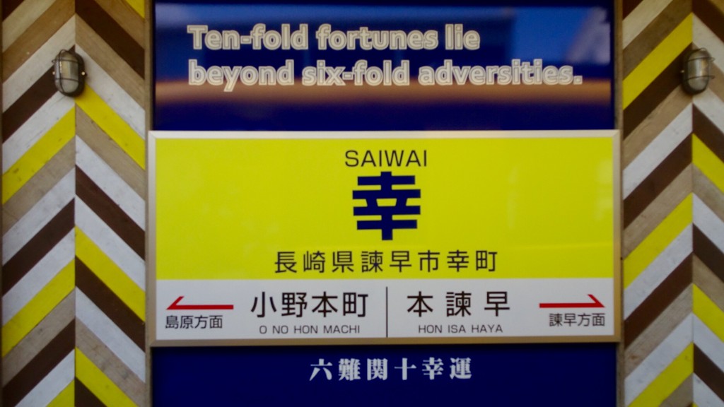 諫早着10:33、島原鉄道が10:36分発。乗り換え時間が3分しか有りません。地下道を走って、一旦JRの改札を出てから島原外港行に飛び乗りました。それで諫早での写真はありません。