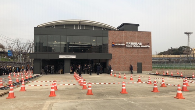 新駅となる「羽沢横浜国大駅」にてレール締結式が行われた。