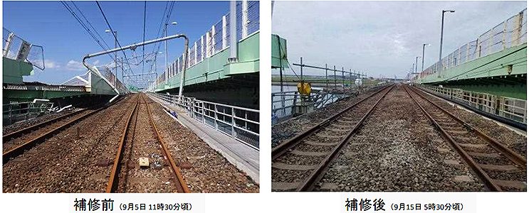 関空鉄道連絡橋、あす9月18日に運転再開_復旧めど前倒し【写真】