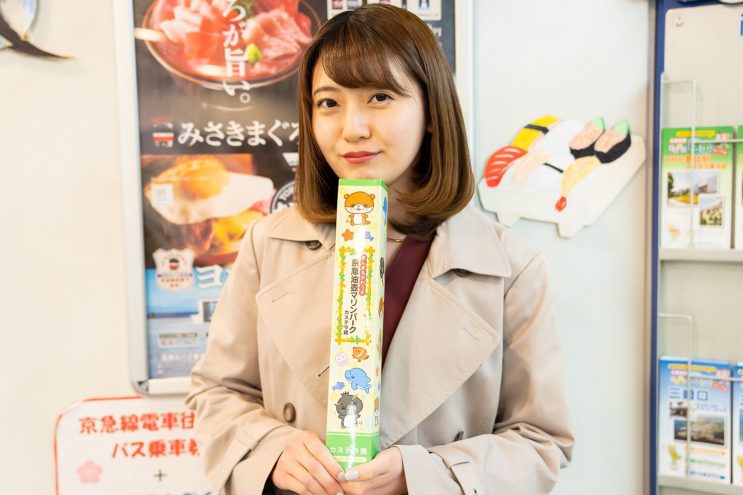 動物たちと触れ合った後はお土産もチェック!京急車両が描かれた可愛らしいパッケージもありました。お腹が空いたので、再びバスに乗り込み出発です。